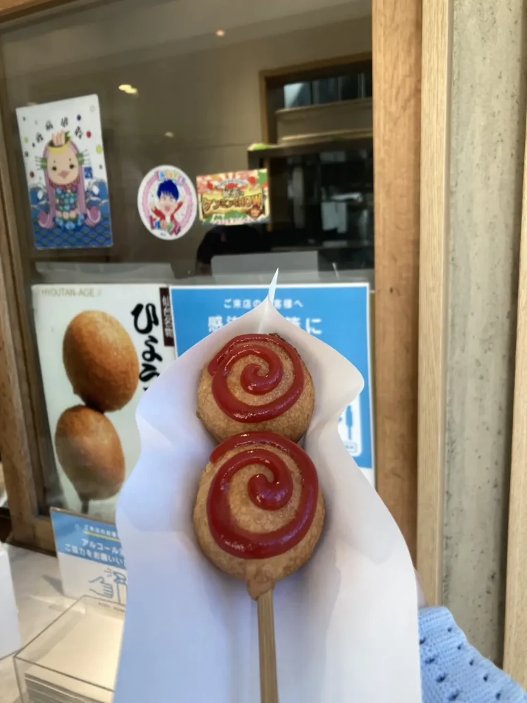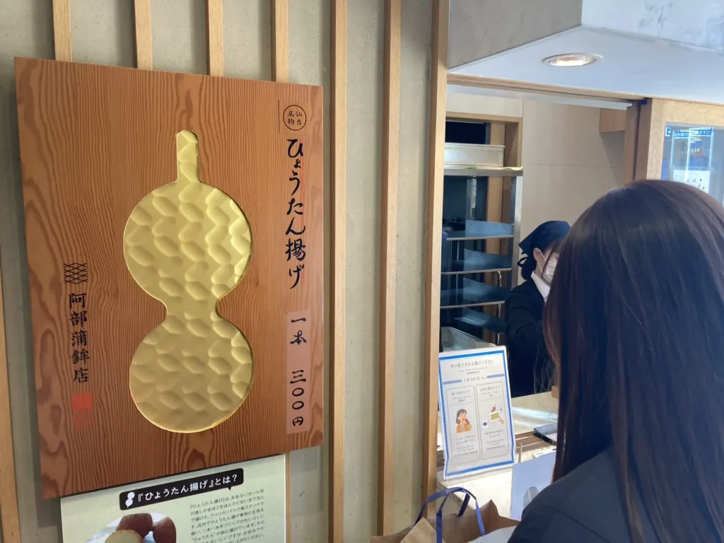 阿部蒲鉾店で、名物のひょうたん揚げをいただく。