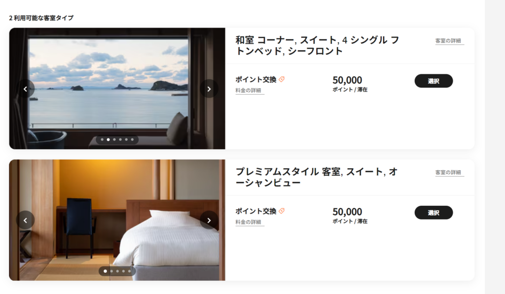 ↓一泊50000ポイント以下でも、